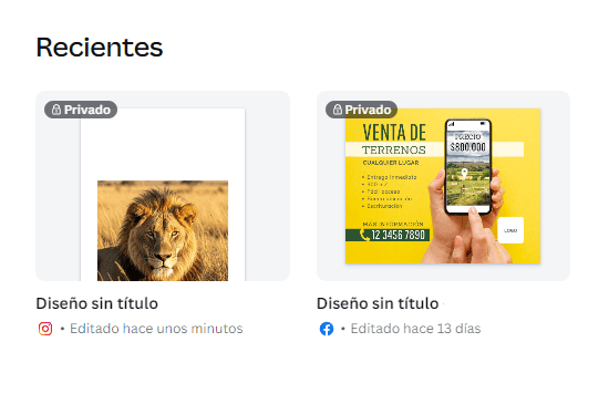 En cada diseño se indica que el diseño es privado
