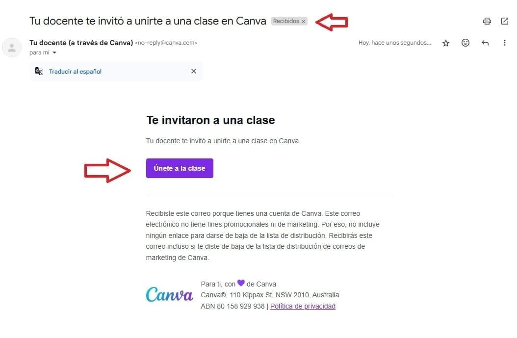 2️⃣ Busca el mensaje de Canva.