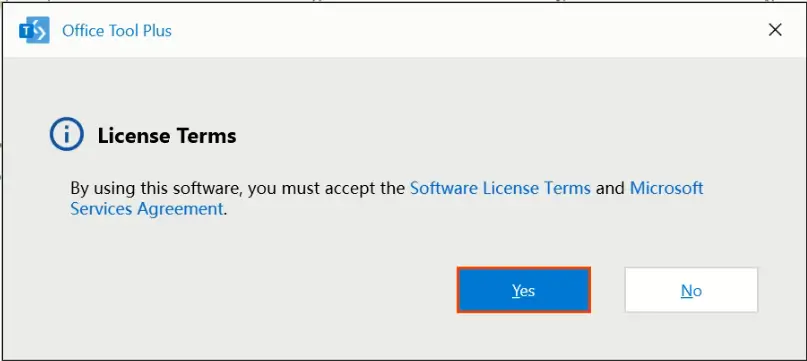 - Haz clic en Yes para aceptar los términos de Microsoft