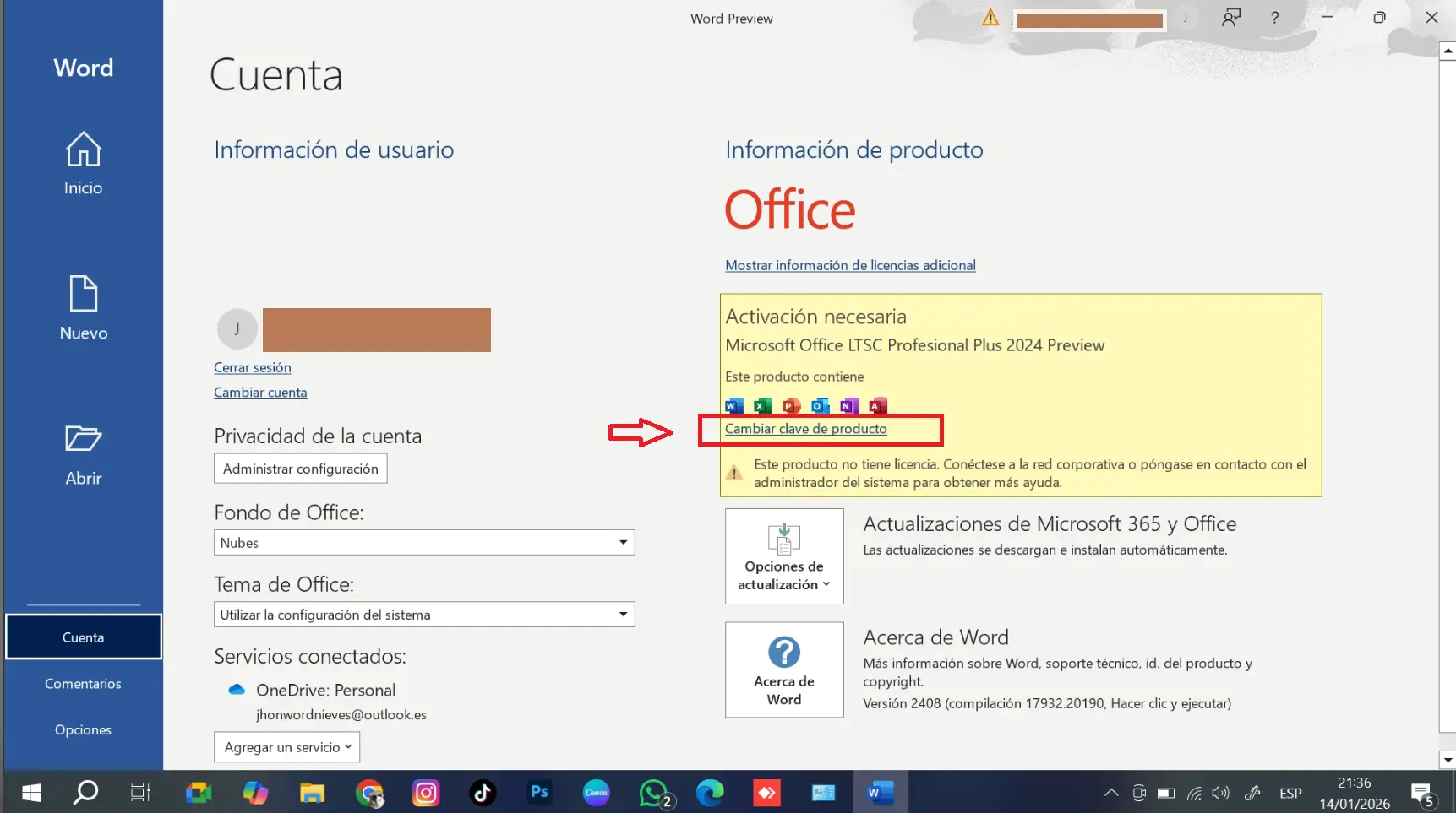🔹 Paso 6: Verificar estado de activación en Word