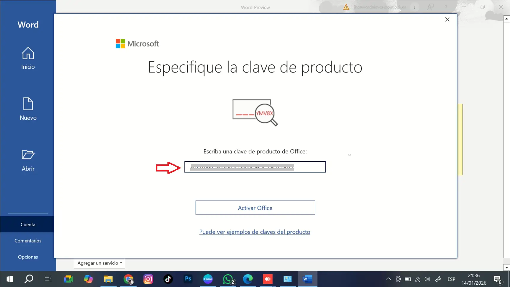 🔹 Paso 7: Ingresar la clave de producto